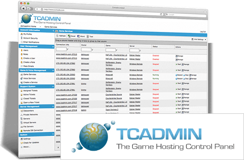 With it's flexible design and powerful features TCAdmin was designed from the ground up to help today's Game Service Provider save time and money, while allowing end users complete control over their servers.